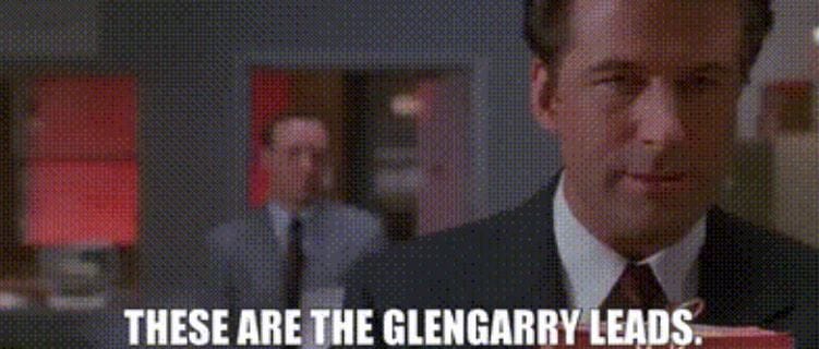David Mamet is a genius. He has written plays that hold up when you turn them into movies, which is a hard thing to do if you know anything about movies or plays. One of everyone's favorites is Glengarry Glenn Ross which was adapted into a movie in 1992. Alec Baldwin steals the entire movie with only being on screen for around 8 minutes. He introduces the idea that there is something so powerful that it makes sales for you: The GlenGarry Leads.